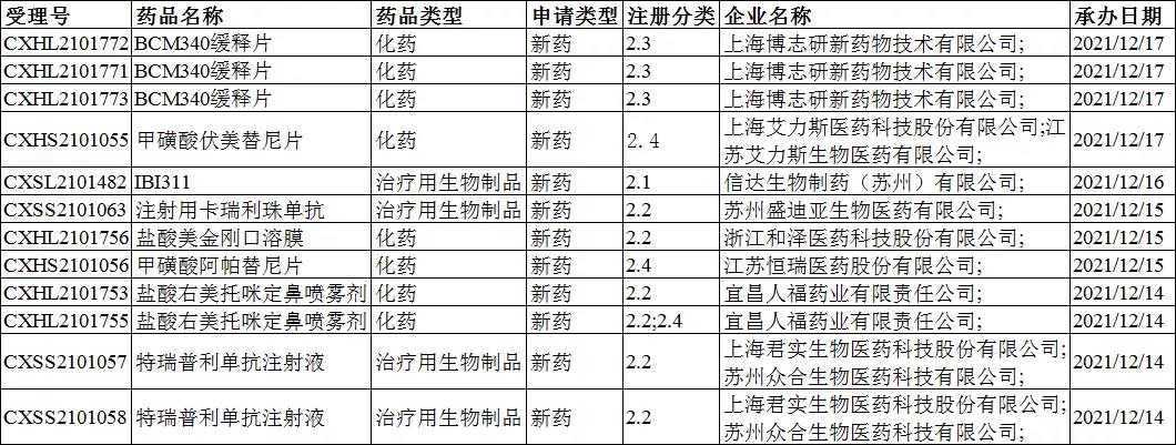 一致性评价受理情况: