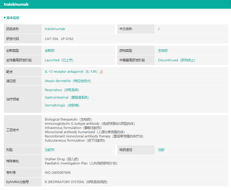 tralokinumab基本信息