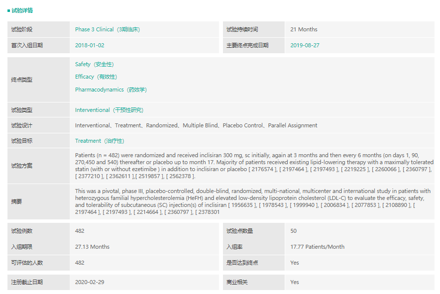 inclisiran实验信息