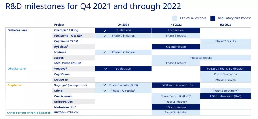诺和诺德近期研发里程碑以及pipeline