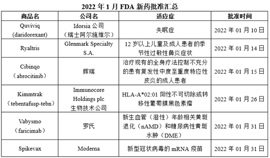 2022年开年1月,美国FDA共批准了哪些新药呢?经药融云数据查询,共有6款,具体信息如下: