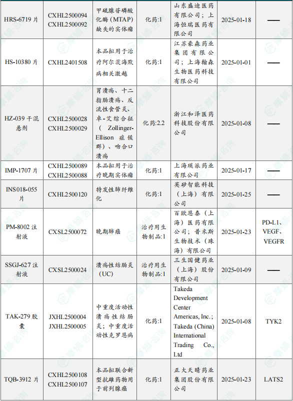 备注:(1)此处未包括补充申请之情形;(2)此处所列创新药/改良型新药,主要是指CDE受理批准的1类、2类、5.1类以及生物制品3.1类和3.2类。(3)更多获批临床信息及研发进展详情及相关靶点全局分析等,可通过摩熵医药中国药品审评数据库获取并下载EXCEL表格。