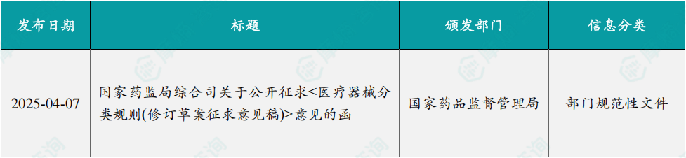 ·《医疗器械分类规则(修订草案征求意见稿)》