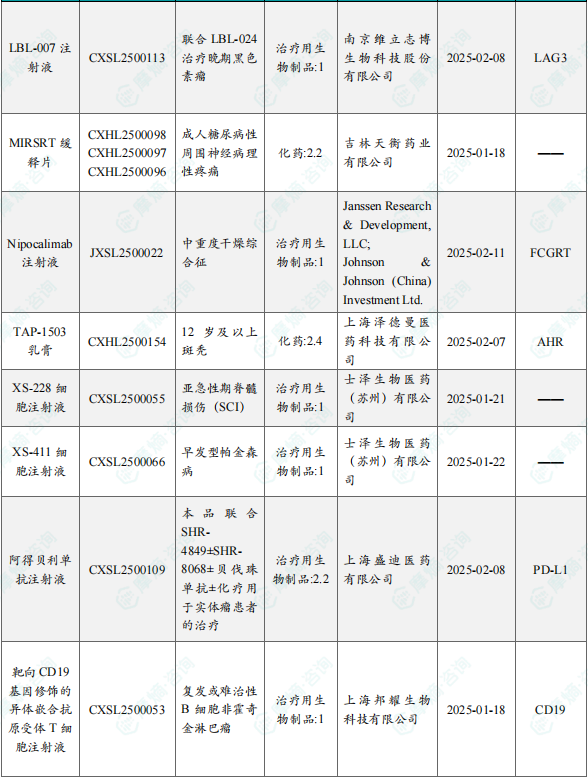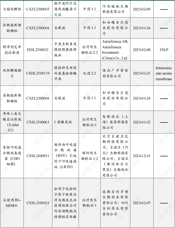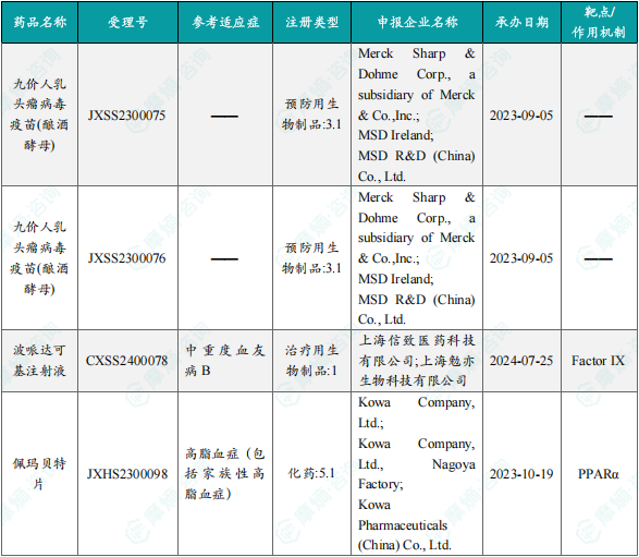 备注:(1)此处未包括补充申请之情形;(2)此处所列创新药/改良型新药,主要是指CDE受理批准的1类、2类、5.1类以及生物制品3.1类和3.2类。(3)更多获批临床信息及研发进展详情及相关靶点全局分析等,可通过摩熵中国药品审评数据库获取并下载EXCEL表格。
