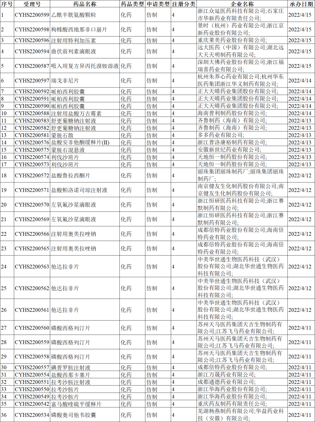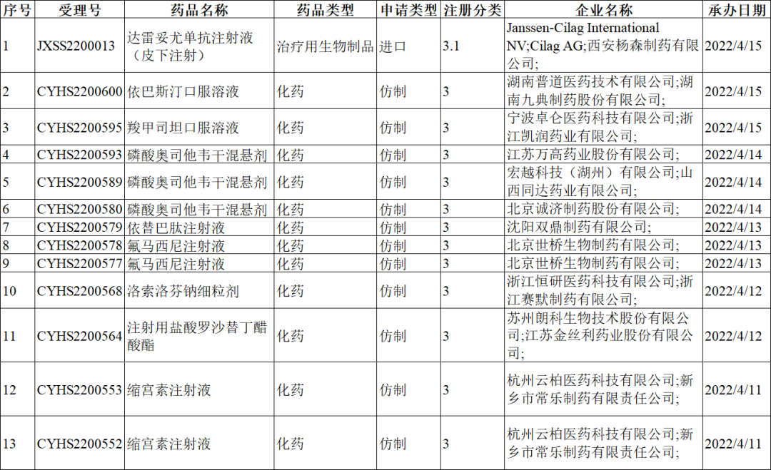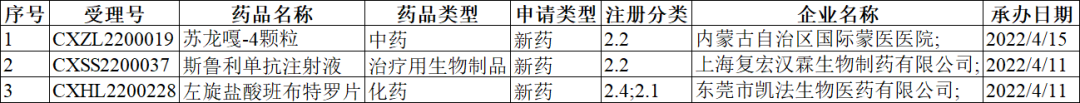 2022年4月4日-10日CDE共承办3个改良型新药受理号,包括2个临床试验申请和一个上市注册申请。