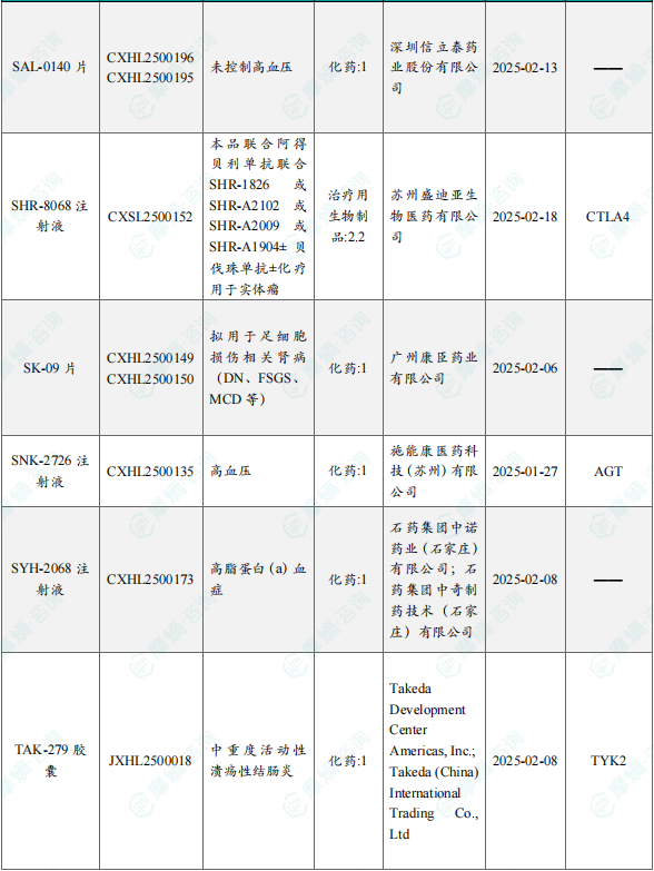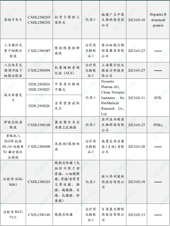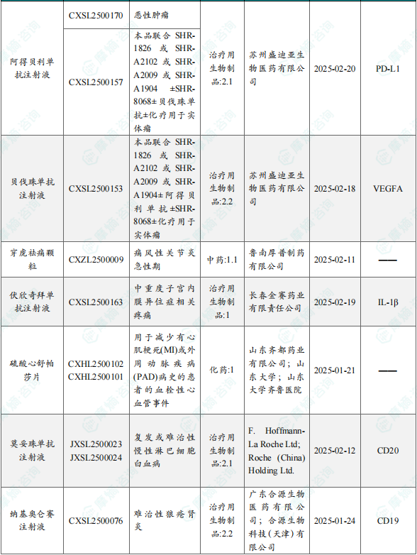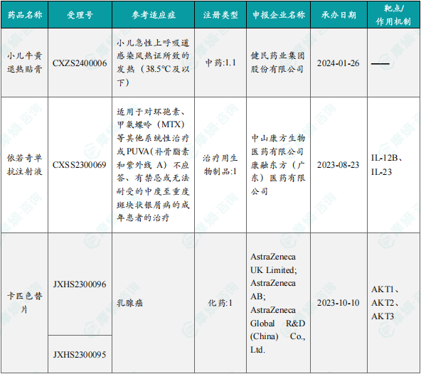 备注:(1)此处未包括补充申请之情形;(2)此处所列创新药/改良型新药,主要是指CDE受理批准的1类、2类、5.1类以及生物制品3.1类和3.2类。(3)更多获批临床信息及研发进展详情及相关靶点全局分析等,可通过摩熵中国药品审评数据库获取并下载EXCEL表格。