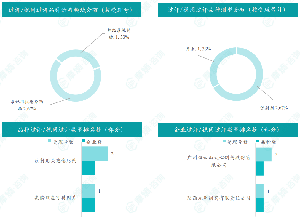 本周各品种过评/视同过评品种数均为1种,本周过评/视同过评企业共包括广州白云山天心制药股份有限公司和陕西九州制药有限责任公司2家企业。