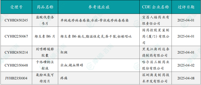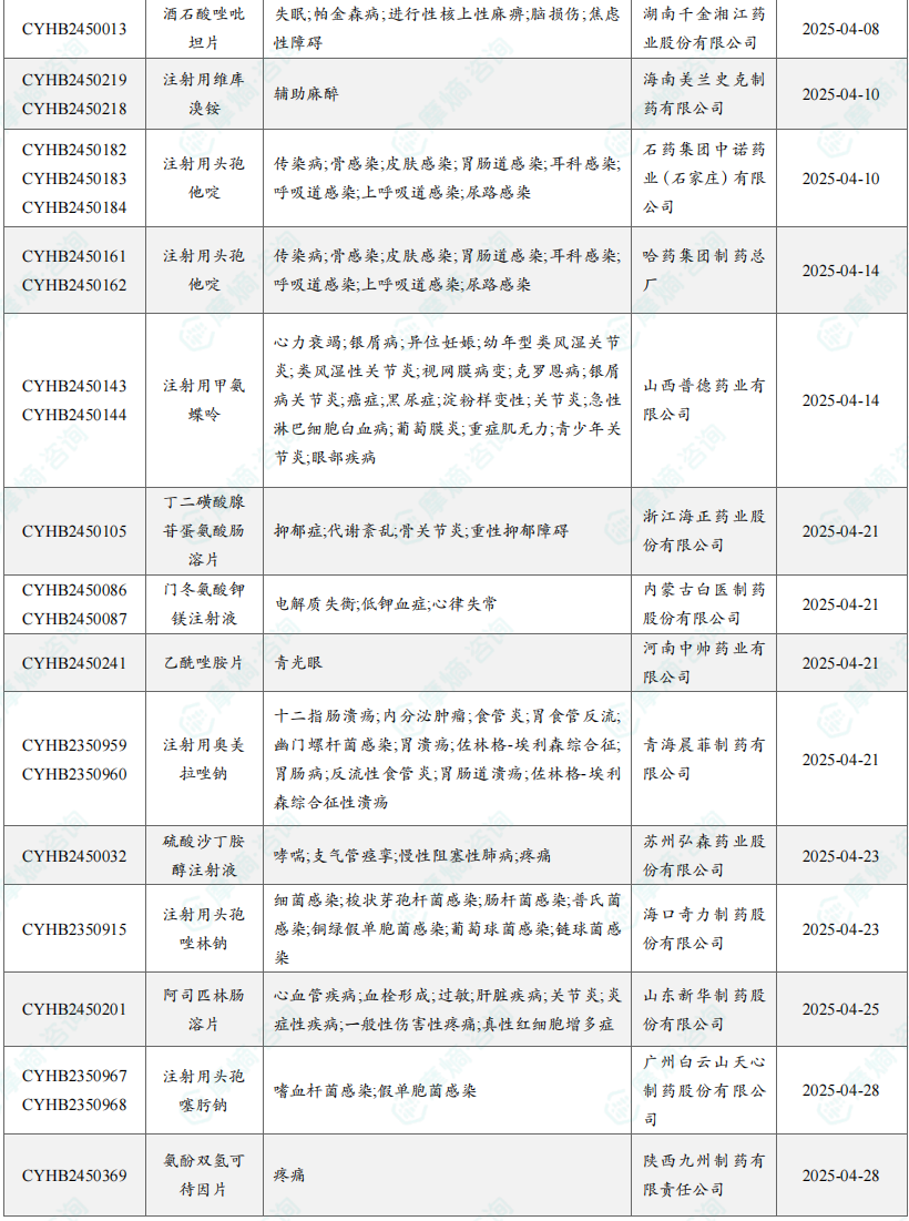 2025年4月通过/视同通过一致性评价达七家品种信息一览表