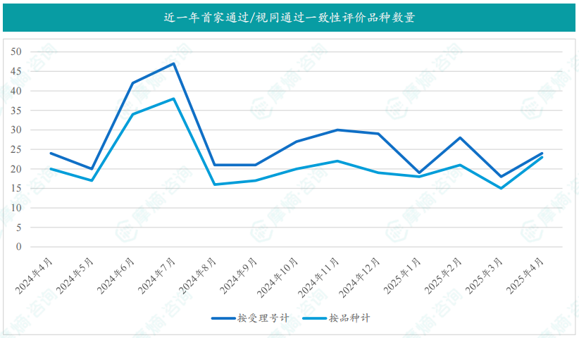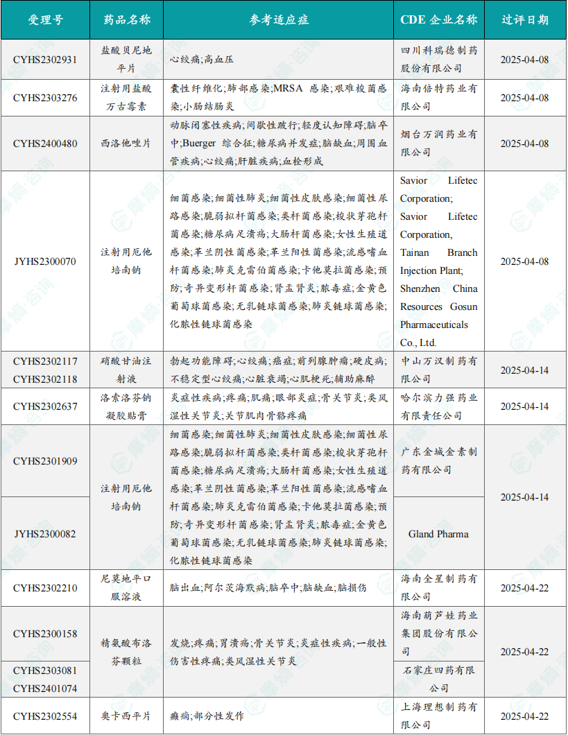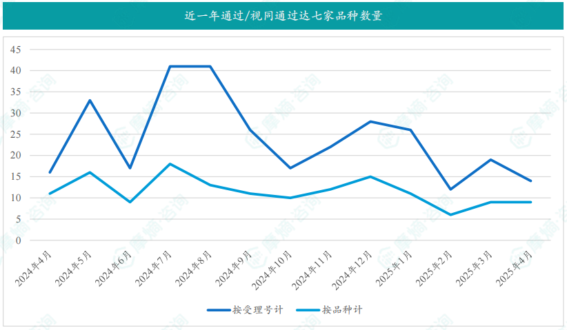 根据摩熵数据统计,2025年4月期间共有9个(共计14个受理号)品种一致性评价达七家过评。