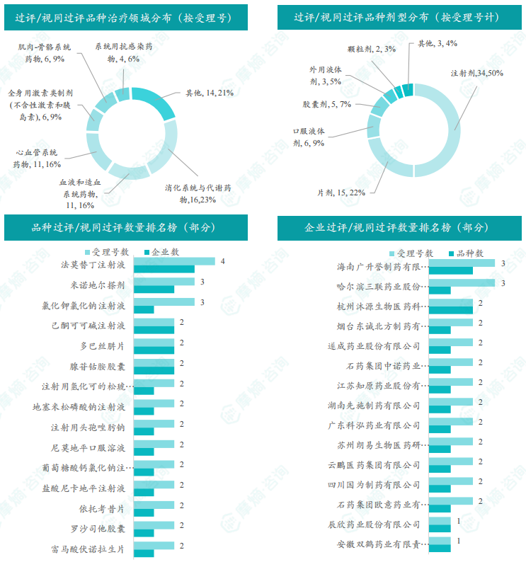 本周法莫替丁注射液过评/视同过评受理号数量最多达4个,同时法莫替丁注射液也是过评/视同过评企业最多达3家;