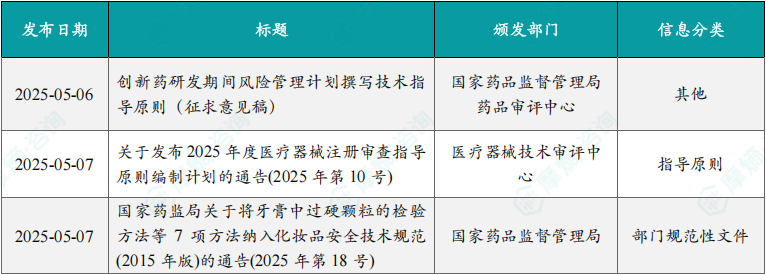 (1)国家药监局发布创新药研发期间风险管理计划撰写技术指导原则征求意见稿