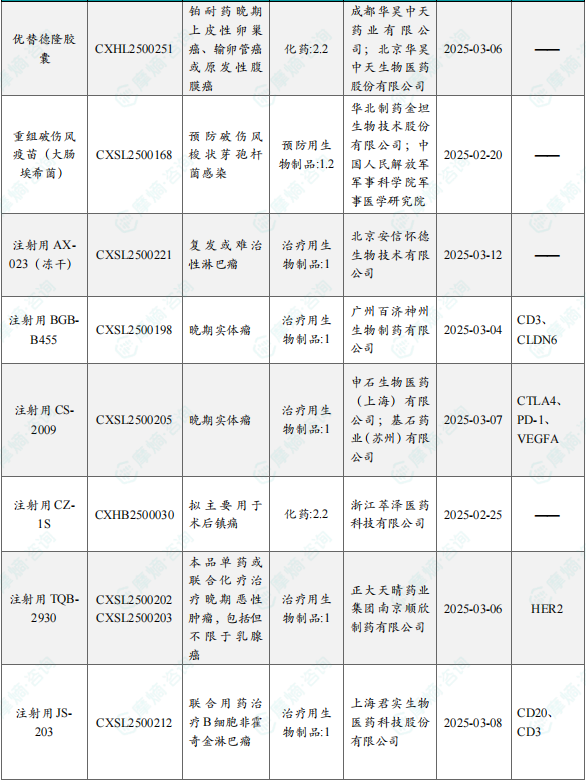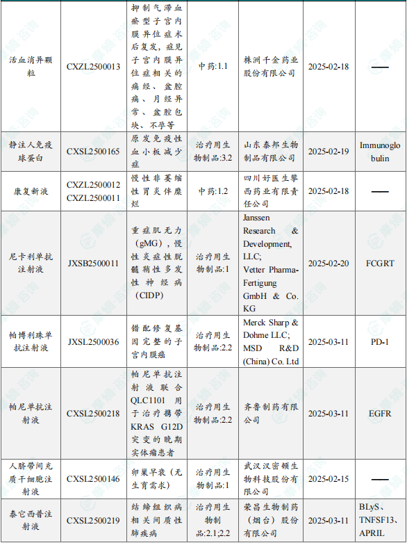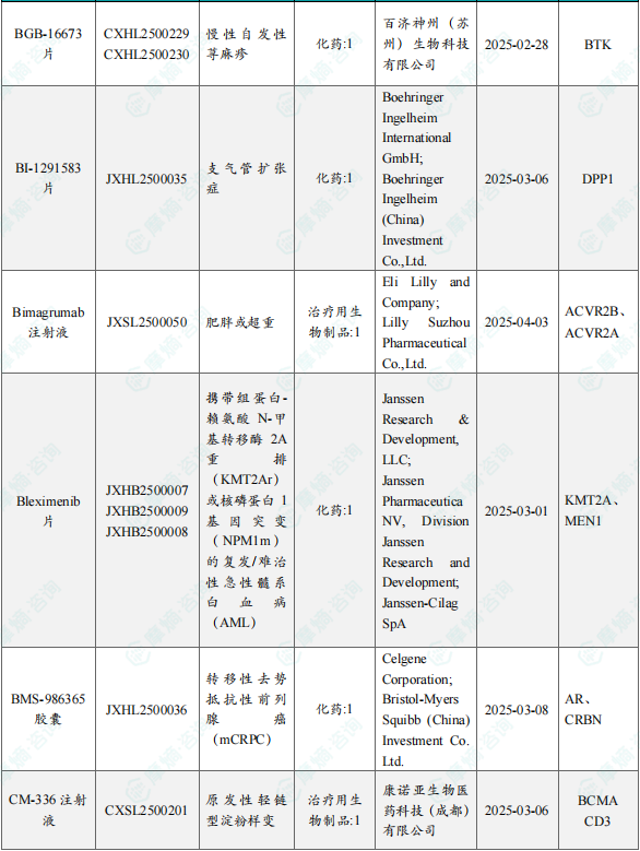 备注:(1)此处未包括补充申请之情形;(2)此处所列创新药/改良型新药,主要是指CDE受理批准的1类、2类、5.1类以及生物制品3.1类和3.2类。(3)更多获批临床信息及研发进展详情及相关靶点全局分析等,可通过摩熵中国药品审评数据库获取并下载EXCEL表格。