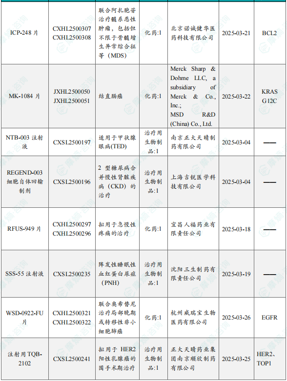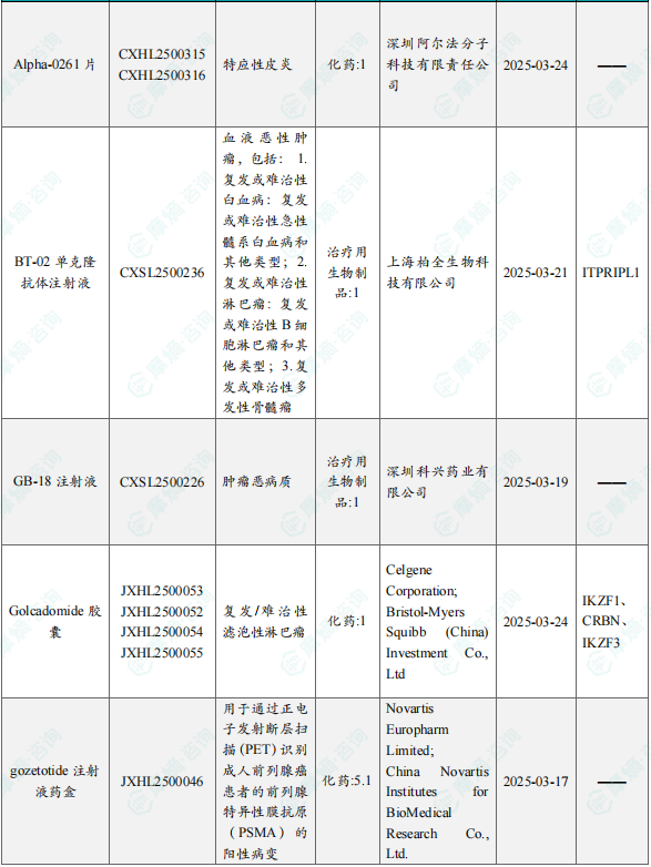 备注:(1)此处未包括补充申请之情形;(2)此处所列创新药/改良型新药,主要是指CDE受理批准的1类、2类、5.1类以及生物制品3.1类和3.2类。(3)更多获批临床信息及研发进展详情及相关靶点全局分析等,可通过摩熵中国药品审评数据库获取并下载EXCEL表格。