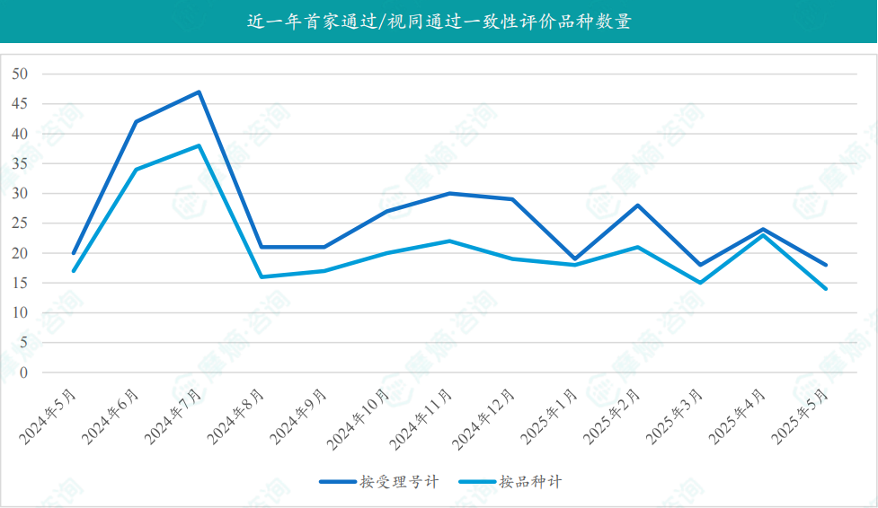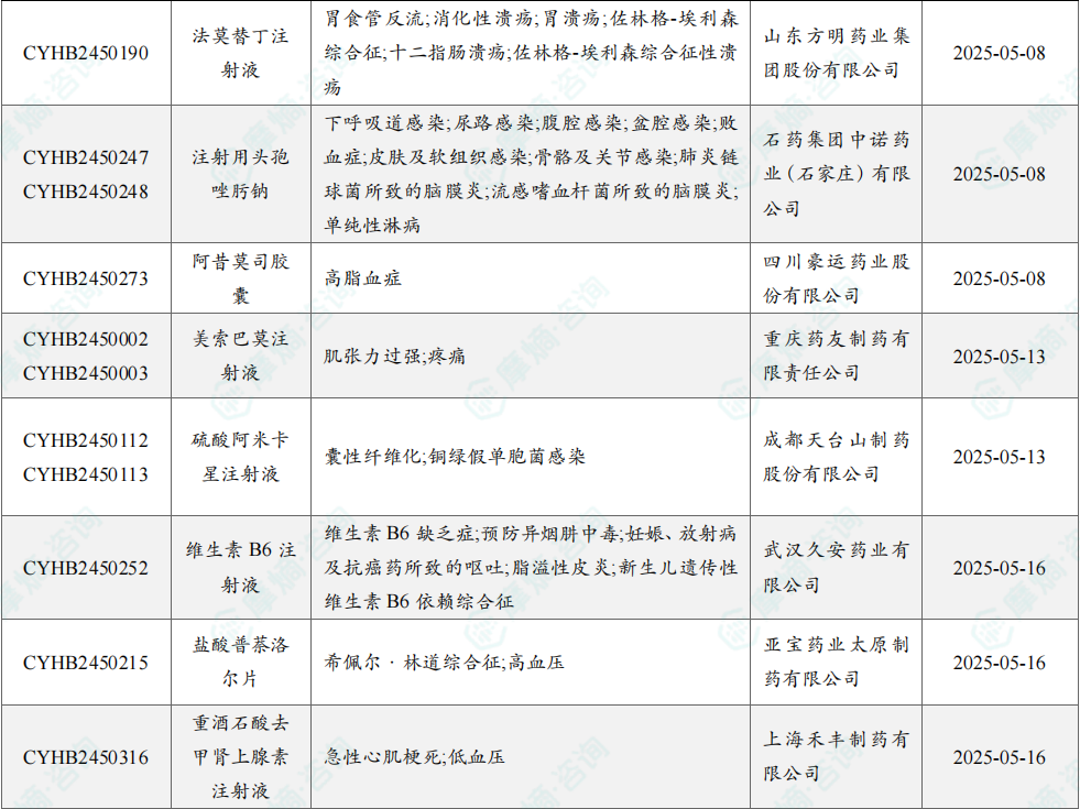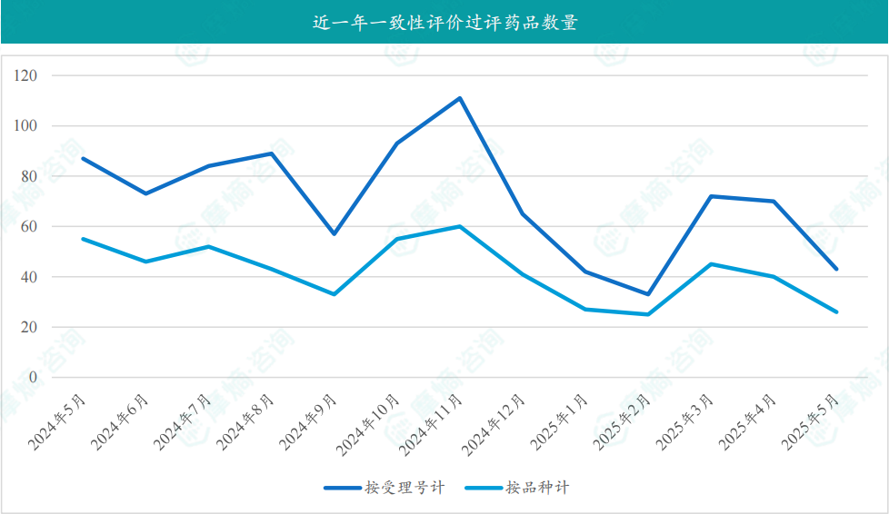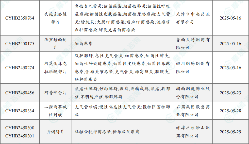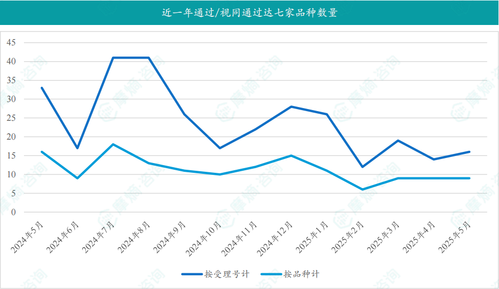 根据摩熵数据统计,2025年5月期间共有9个(共计16个受理号)品种一致性评价达七家过评。