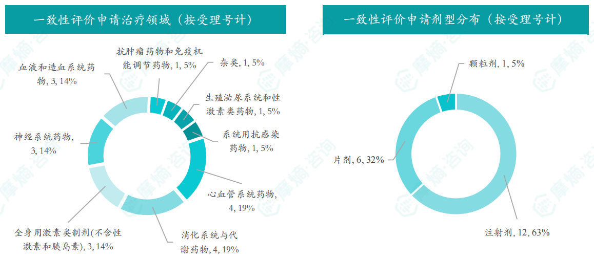 - 申请品种主要为心血管系统药物,申请剂型主要为注射剂;