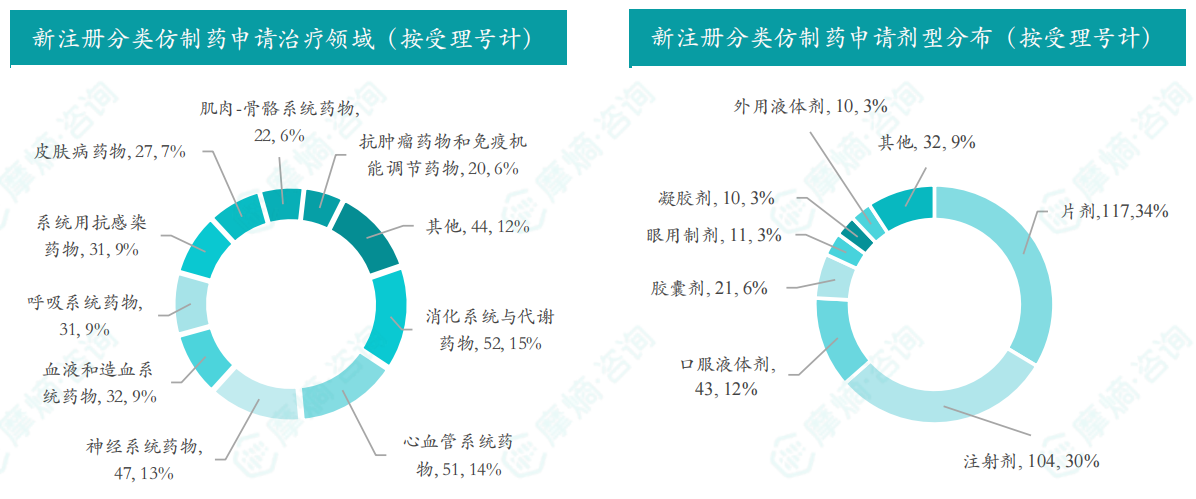 根据摩熵数据统计,2025年5月期间共有348项(共计224个品种)新注册分类仿制药申请获CDE承办,其中新注册分类临床申请 15 项,新注册分类上市申请 333 项。