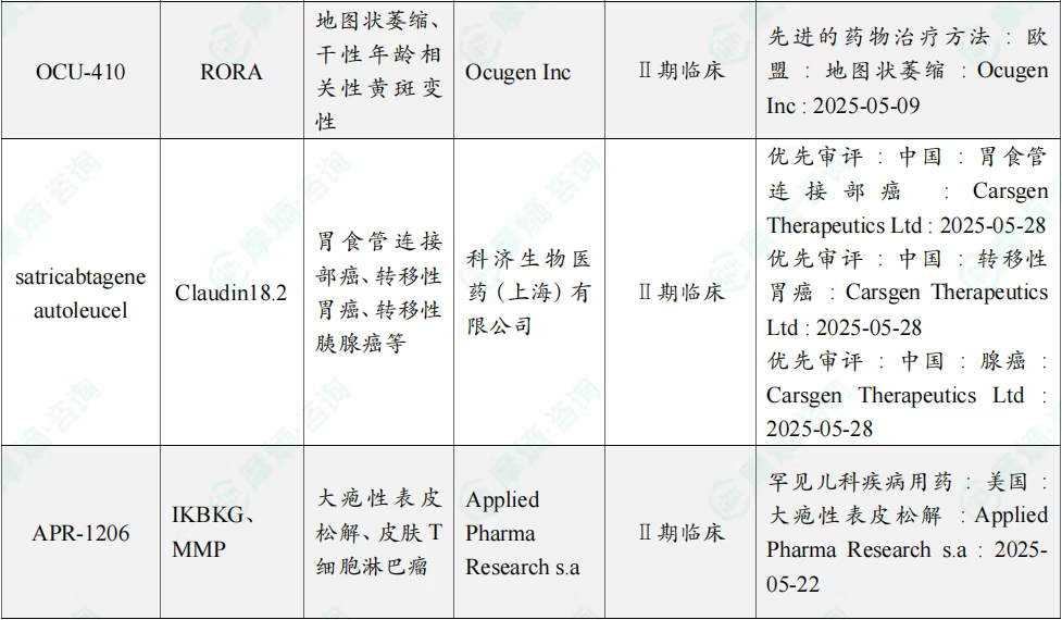 以上内容均来自摩熵咨询{2025年5月全球在研新药月报},如需查看或下载完整版报告,可点击!