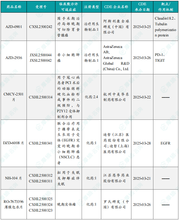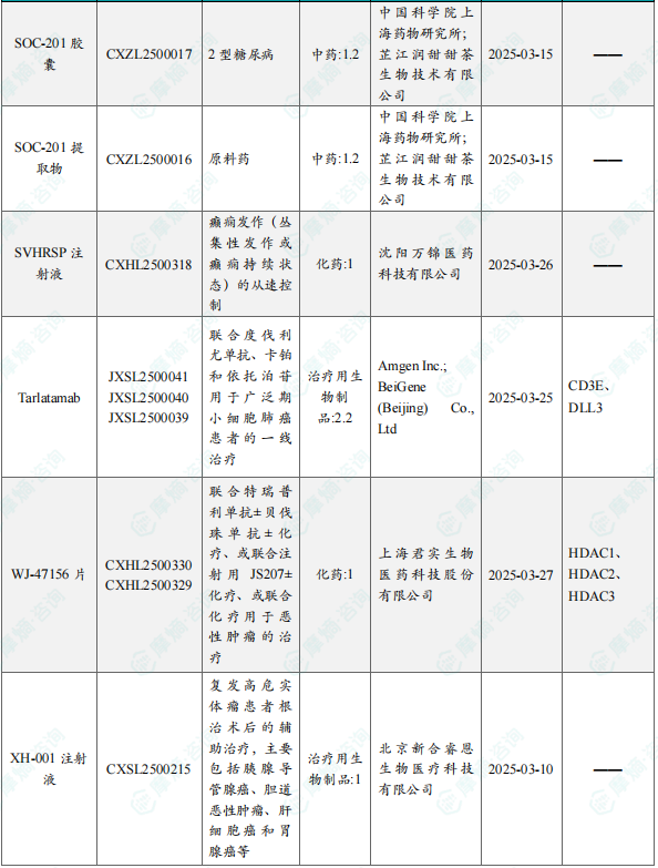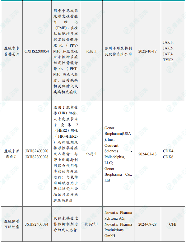 备注:(1)此处未包括补充申请之情形;(2)此处所列创新药/改良型新药,主要是指CDE受理批准的1类、2类、5.1类以及生物制品3.1类和3.2类。(3)更多获批临床信息及研发进展详情及相关靶点全局分析等,可通过摩熵中国药品审评数据库获取并下载EXCEL表格。