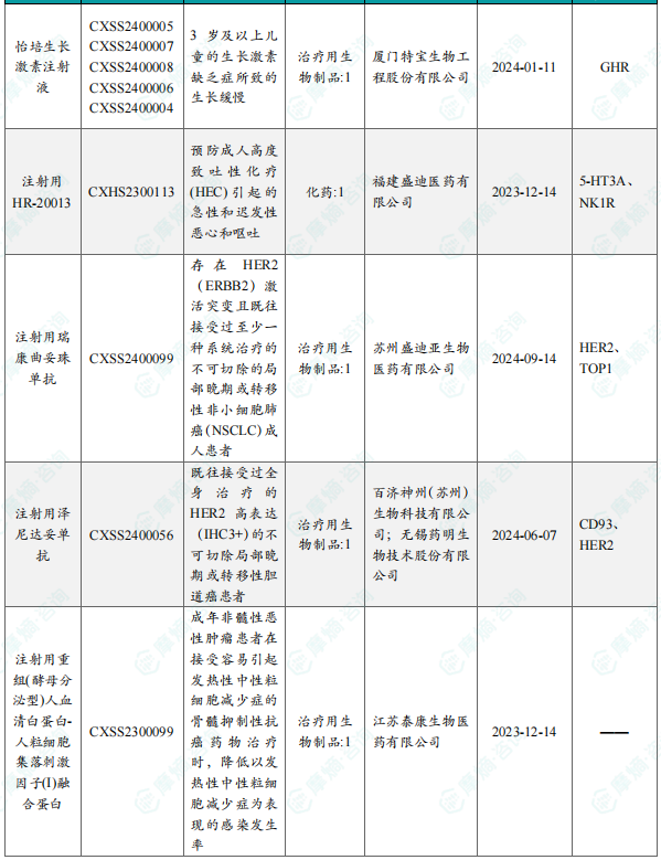 备注:(1)此处所列新药,主要是指国家药品监督管理局(NMPA)首次批准在中国上市的药品,包括新分子实体(以及包含有新分子实体的复方)、生物药、中药和疫苗。其中,新分子实体主要是化药注册分类下的1类(境内外均未上市的创新药)、5.1类(境外上市的原研药申请在国内上市);生物药主要为NMPA首次批准的国产及进口生物药;不包括生物类似物、新适应症、新剂型。(2)更多信息如获批临床品种相关靶点、研发企业、全球上市及研发进展及相关靶点全局分析等,可通过摩熵医药数据库和(或)联系摩熵客服获取并下载EXCEL表格。