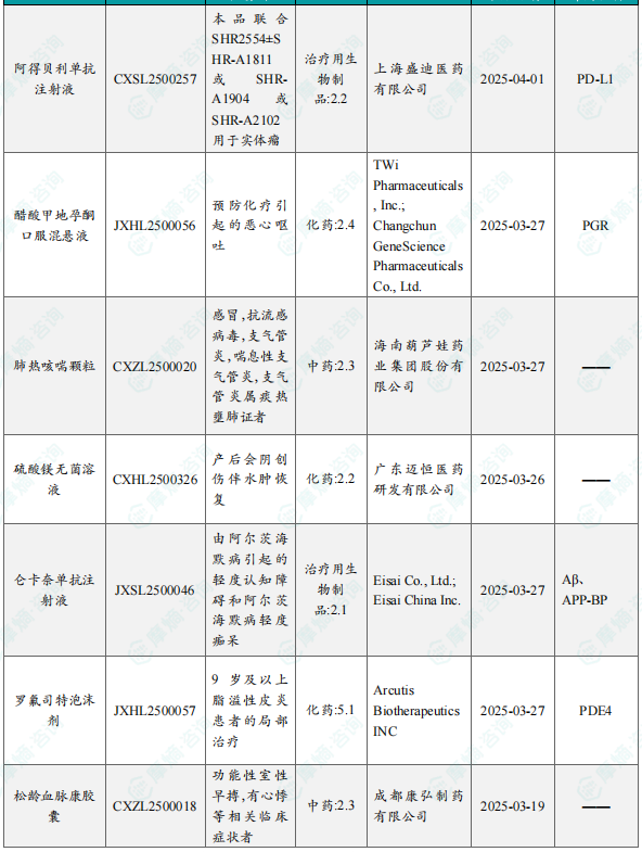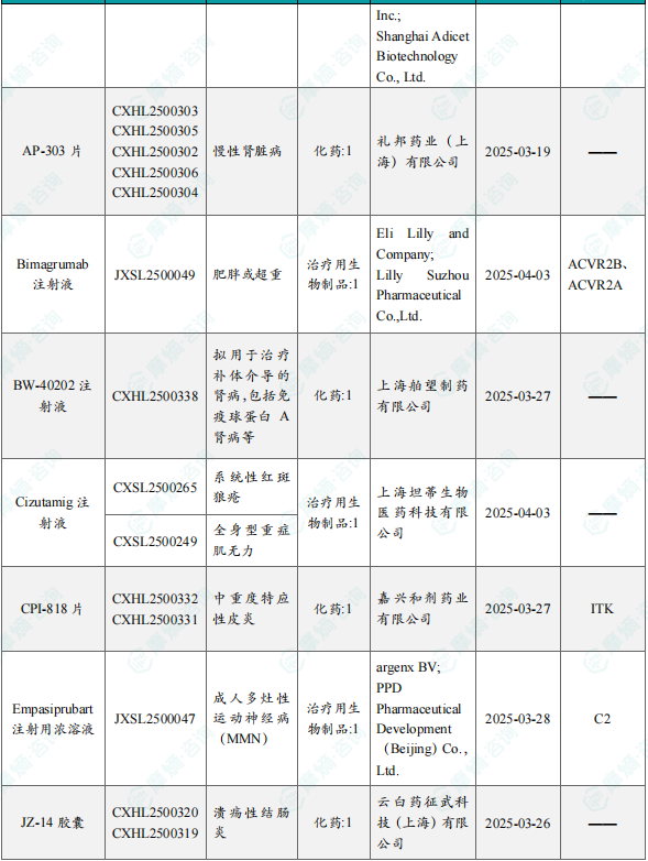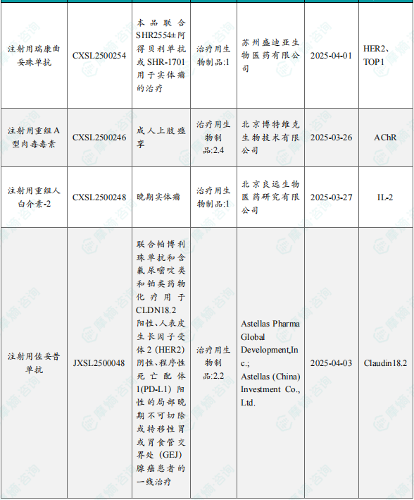 备注:(1)此处未包括补充申请之情形;(2)此处所列创新药/改良型新药,主要是指CDE受理批准的1类、2类、5.1类以及生物制品3.1类和3.2类。(3)更多获批临床信息及研发进展详情及相关靶点全局分析等,可通过摩熵中国药品审评数据库获取并下载EXCEL表格。