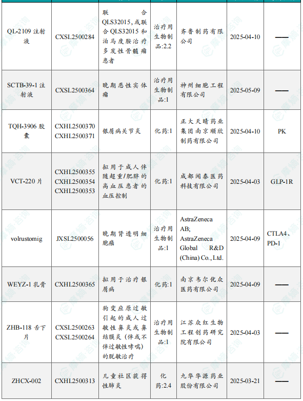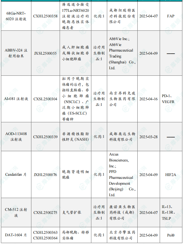 备注:(1)此处未包括补充申请之情形;(2)此处所列创新药/改良型新药,主要是指CDE受理批准的1类、2类、5.1类以及生物制品3.1类和3.2类。(3)更多获批临床信息及研发进展详情及相关靶点全局分析等,可通过摩熵中国药品审评数据库获取并下载EXCEL表格。