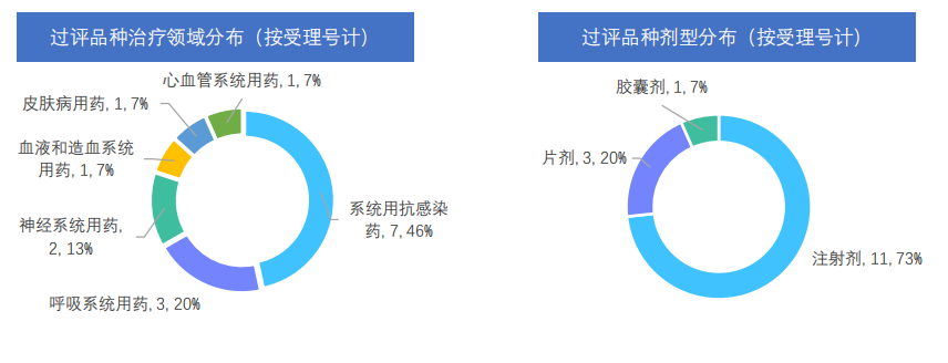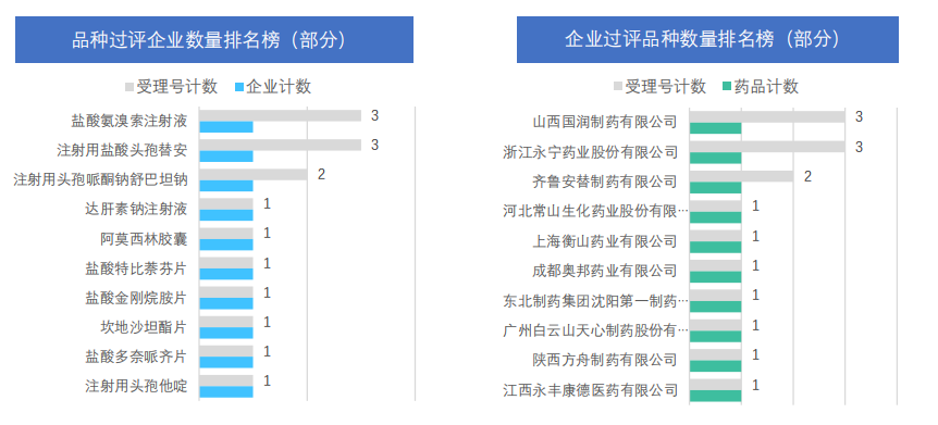 本周仿制药过评品种主要为系统用抗感染药,过评产品剂型主要为注射剂,还包括片剂和胶囊剂;本周过评受理号数量最多的品种为盐酸氨溴索注射液和注射用盐酸头孢替安,注射用头孢哌酮钠舒巴坦钠紧随其后;本周过评企业有山西国润制药、浙江永宁药业、齐鲁安替制药和河北常山生化药业等10家企业。