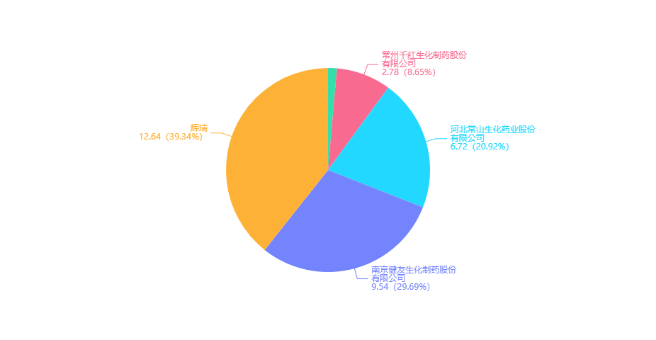 此外,河北常山生化药业拿下达肝素钠注射液的仿制药首家过评,达肝素钠是一种抗血栓剂,近几年持续高速增长,据药融云数据库统计,2021年达肝素钠注射液院内销售额达8.37亿元,同比增长53%。在生产企业方面,依旧是原研辉瑞排名TOP1,占据近四成的市场,其次是南京健友生化、河北常山生化。除了此次过评的河北常山生化药业外,南京健友生化、常州千红生化也递交了仿制药一致性评价补充申请,烟台东诚北方制药于6月28日递交了该品种的4类仿制化药上市申请。
