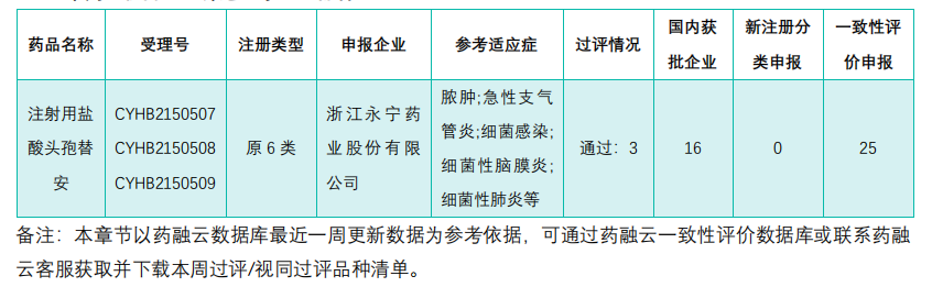 (2)本周仿制药过评达3家企业品种