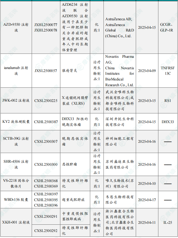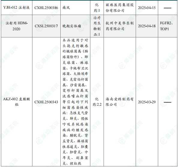 备注:(1)此处未包括补充申请之情形;(2)此处所列创新药/改良型新药,主要是指CDE受理批准的1类、2类、5.1类以及生物制品3.1类和3.2类。(3)更多获批临床信息及研发进展详情及相关靶点全局分析等,可通过摩熵中国药品审评数据库获取并下载EXCEL表格。