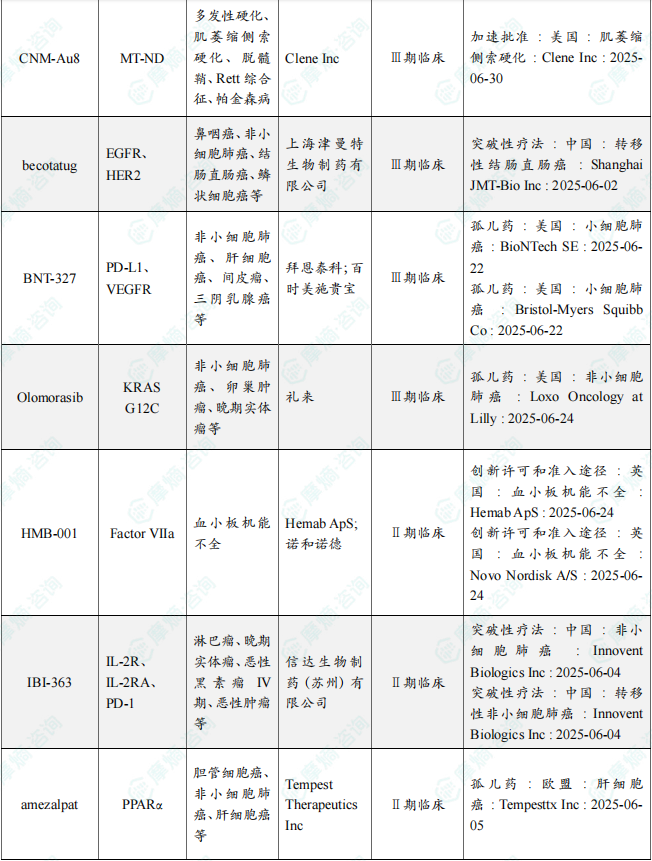 以上内容均来自摩熵咨询{2025年6月全球在研新药月报},如需查看或下载完整版报告,可点击!