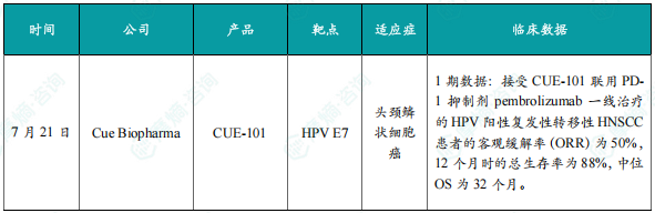 (1)Cue Biopharma公布CUE-101 1期联合治疗试验数据