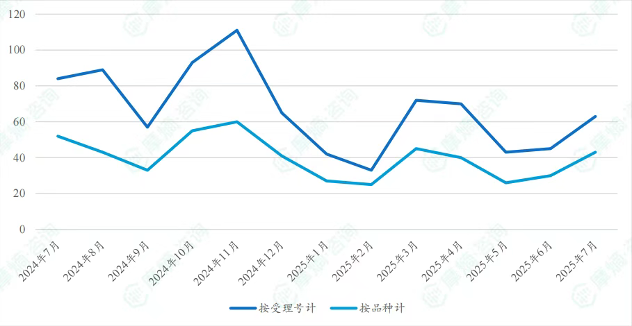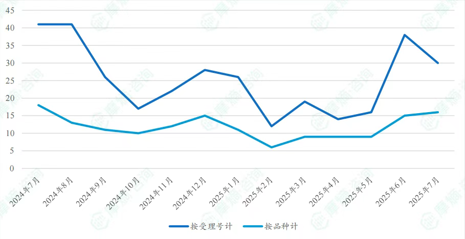 近一年通过/视同通过达七家品种数量