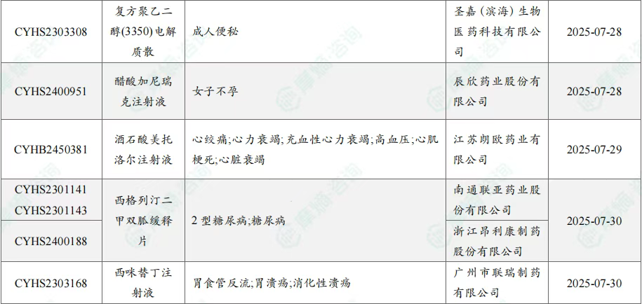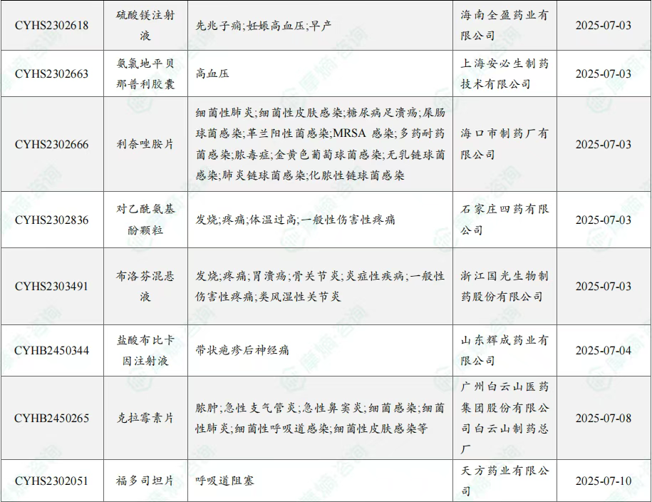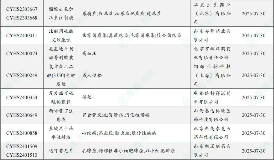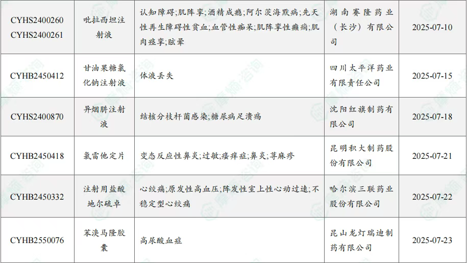 7月过评/新注册分类仿制药获批上市信息