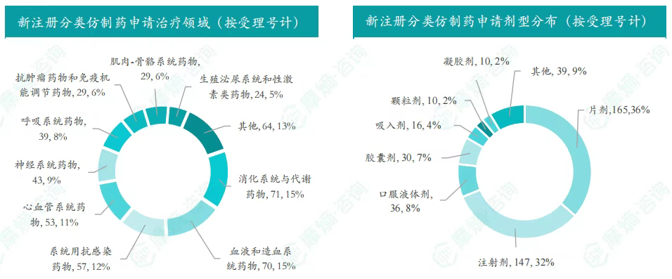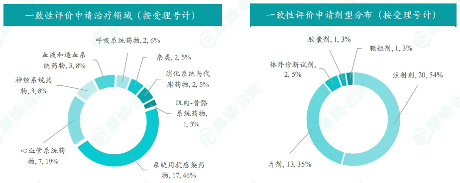 - 申请品种主要为系统用抗感染药物,申请剂型主要为注射剂;