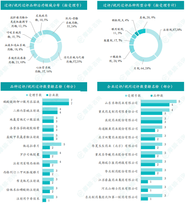 本周过评/视同过评品种主要为消化系统与代谢药物;过评/视同过评产品剂型主要为注射剂;本周硫酸镁钠钾口服用浓溶液品种过评/视同过评受理号数量达到7个,同时硫酸镁钠钾口服用浓溶液也是本周过评/视同过评企业最多的品种为7家;本周山东齐都药业有限公司过评/视同过评品种数最多达4种,本周过评/视同过评企业共包括山东齐都药业有限公司、重庆药友制药有限责任公司、辰欣药业股份有限公司等162家企业。