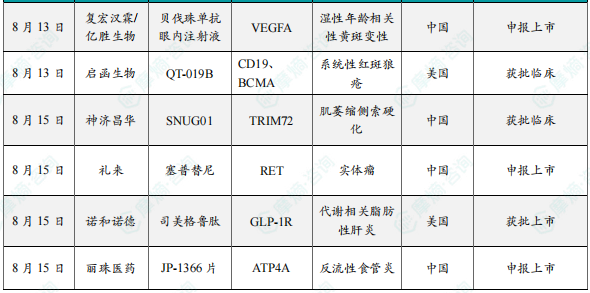 1. 2025年第33周08.11-08.17国内创新药/改良型新药申请临床/获批临床/申请上市/获批上市数据分析