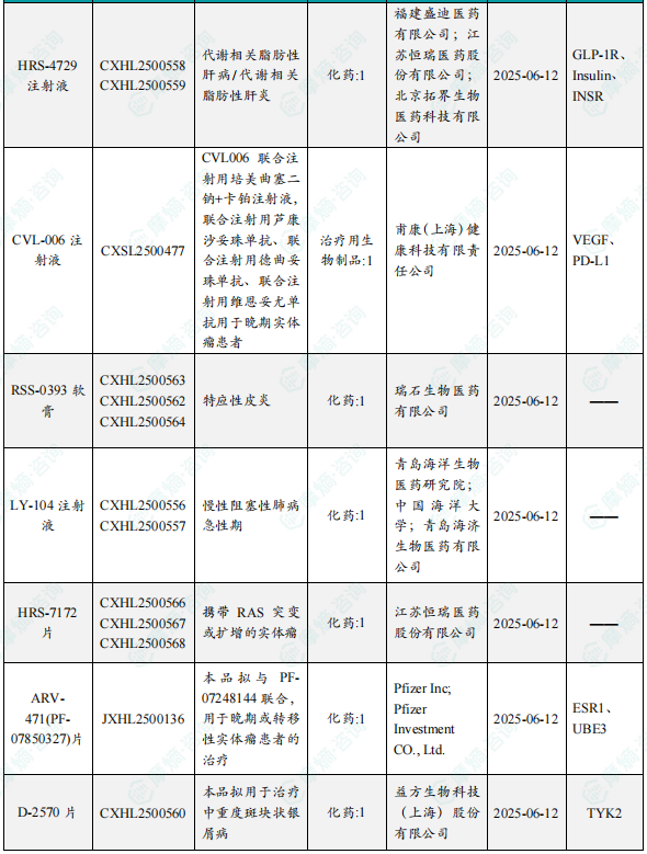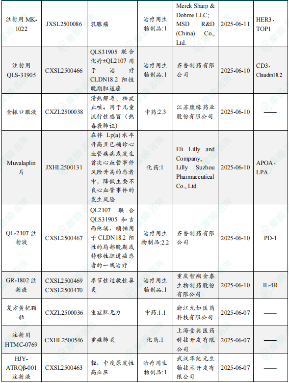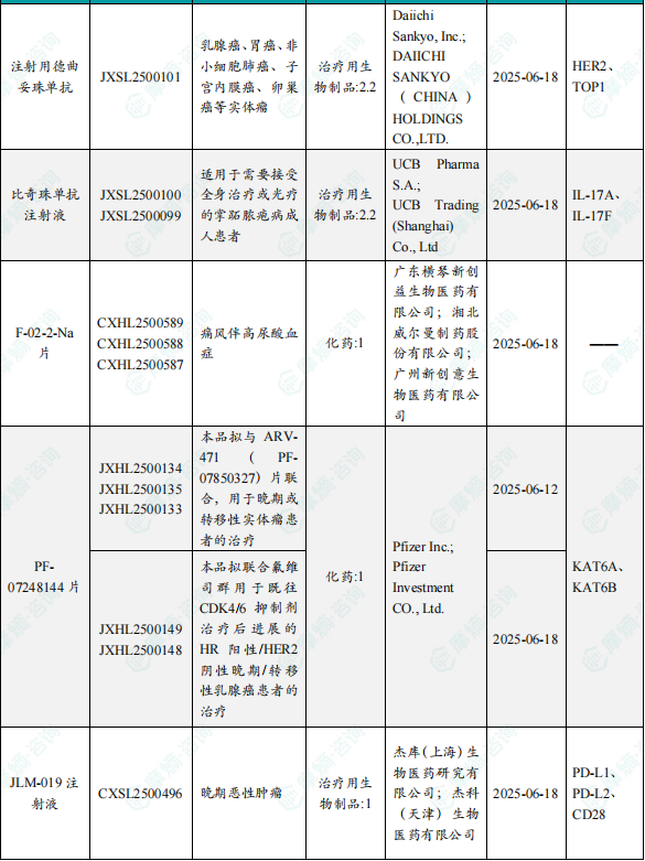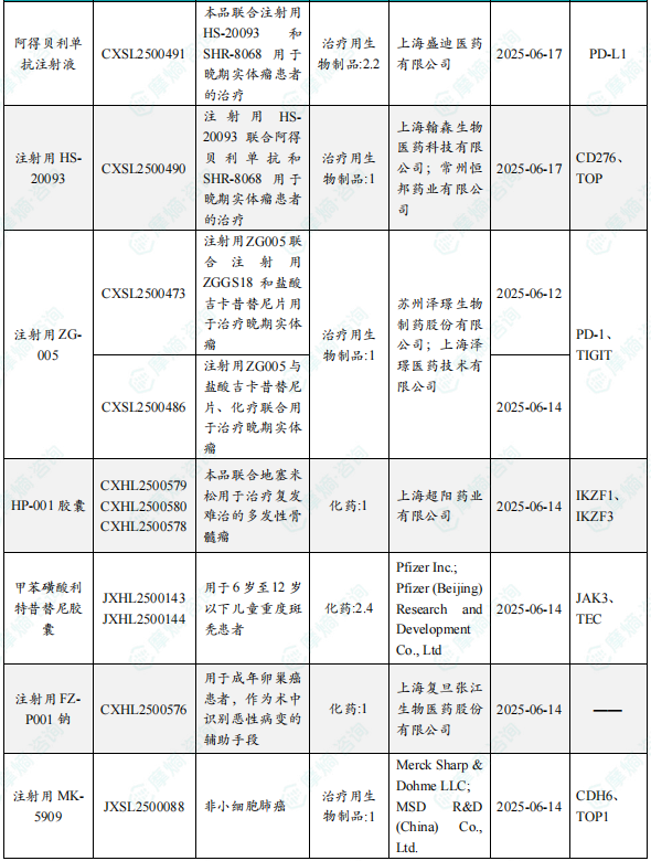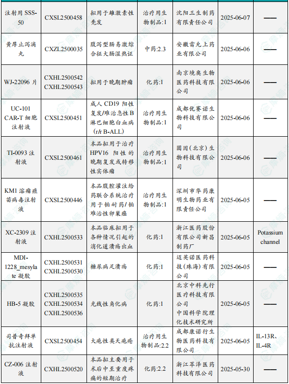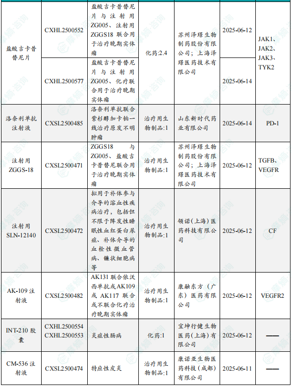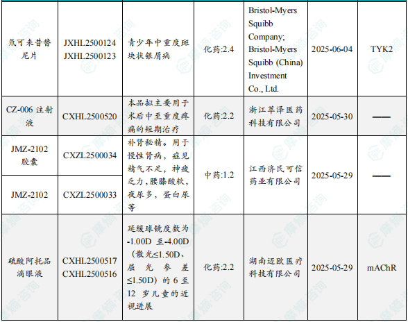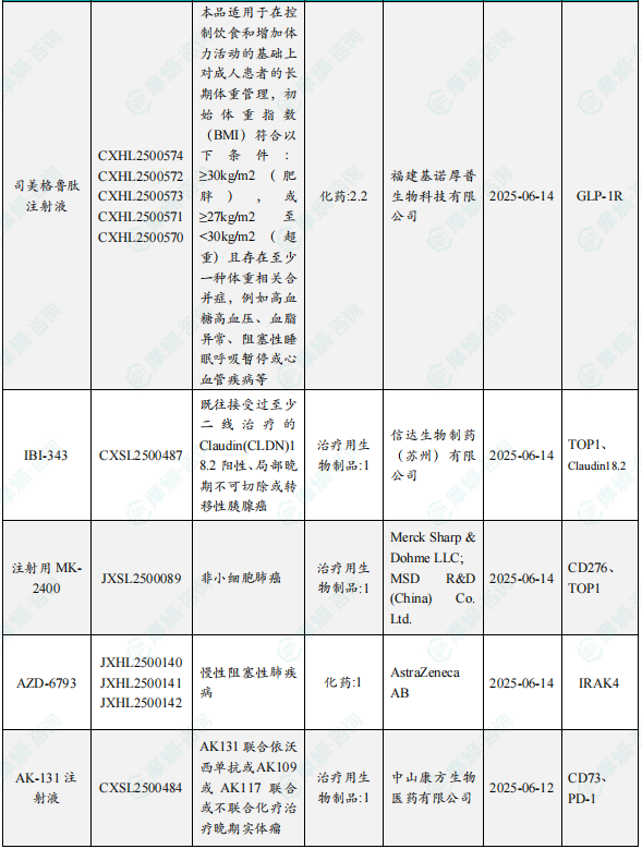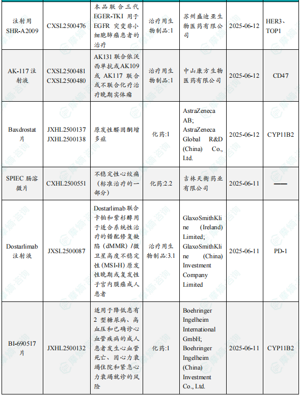 备注:(1)此处未包括补充申请之情形;(2)此处所列创新药/改良型新药,主要是指CDE受理批准的1类、2类、5.1类以及生物制品3.1类和3.2类。(3)更多获批临床信息及研发进展详情及相关靶点全局分析等,可通过摩熵中国药品审评数据库获取并下载EXCEL表格。