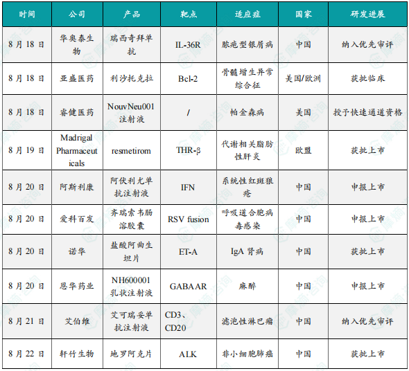 (1)华奥泰生物抗IL-36R抗体新药瑞西奇拜单抗被纳入优先审评