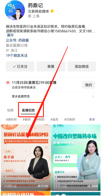 识别二维码,关注“药鼎记”视频号,即可查看直播回放。