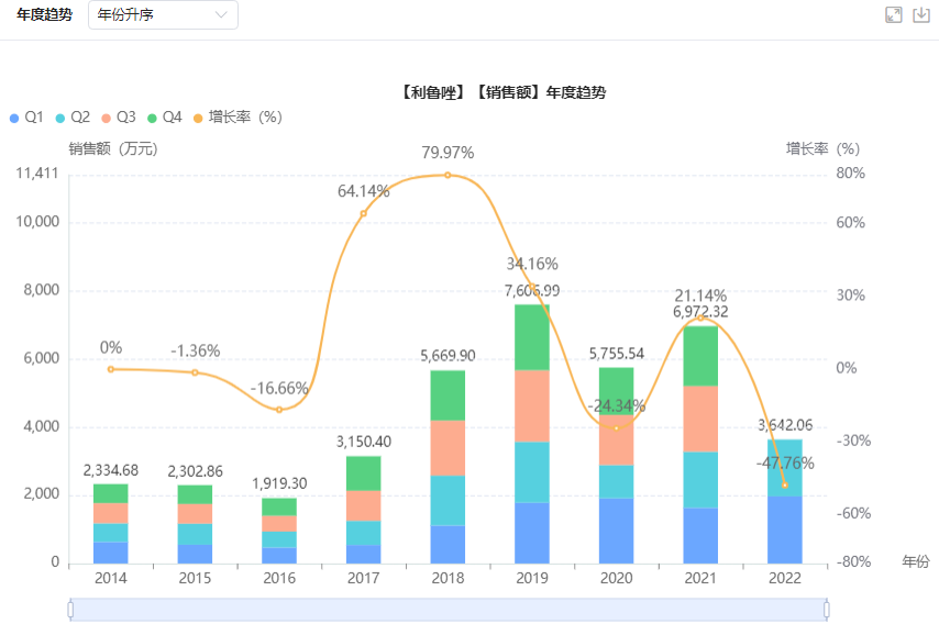 利鲁唑医院端的年度销售趋势
