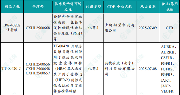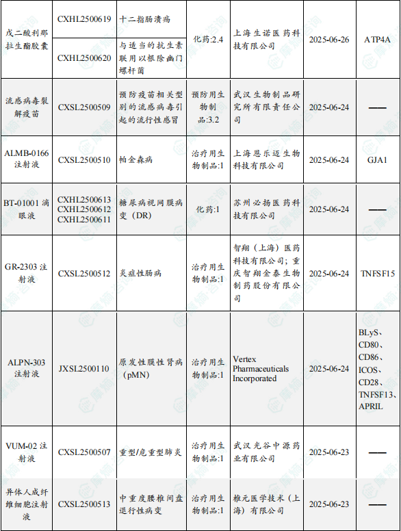 备注:(1)此处未包括补充申请之情形;(2)此处所列创新药/改良型新药,主要是指CDE受理批准的1类、2类、5.1类以及生物制品3.1类和3.2类。(3)更多获批临床信息及研发进展详情及相关靶点全局分析等,可通过摩熵中国药品审评数据库获取并下载EXCEL表格。