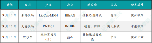 9月15日,大睿生物(Rona Therapeutics)宣布,该公司自主研发的RN3161已向澳大利亚人类研究伦理委员会(HREC)递交临床试验申请。