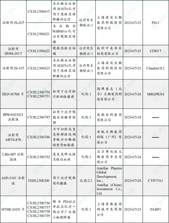 备注:(1)此处未包括补充申请之情形;(2)此处所列创新药/改良型新药,主要是指CDE受理批准的1类、2类、5.1类以及生物制品3.1类和3.2类。(3)更多获批临床信息及研发进展详情及相关靶点全局分析等,可通过摩熵中国药品审评数据库获取并下载EXCEL表格。