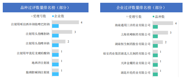 从企业层面来看,湖南九典制药和湖南科伦制药均于本周过评2个品种,湖南九典制药的过评品种为酮洛芬凝胶贴膏和枸橼酸托法替布片,湖南科伦制药的过评品种则为盐酸莫西沙星氯化钠注射液、泊沙康唑口服混悬液,其余过评企业有深圳市贝美药业、上海汇伦江苏药业、福安药业集团庆余堂制药和成都倍特药业等21家企业。