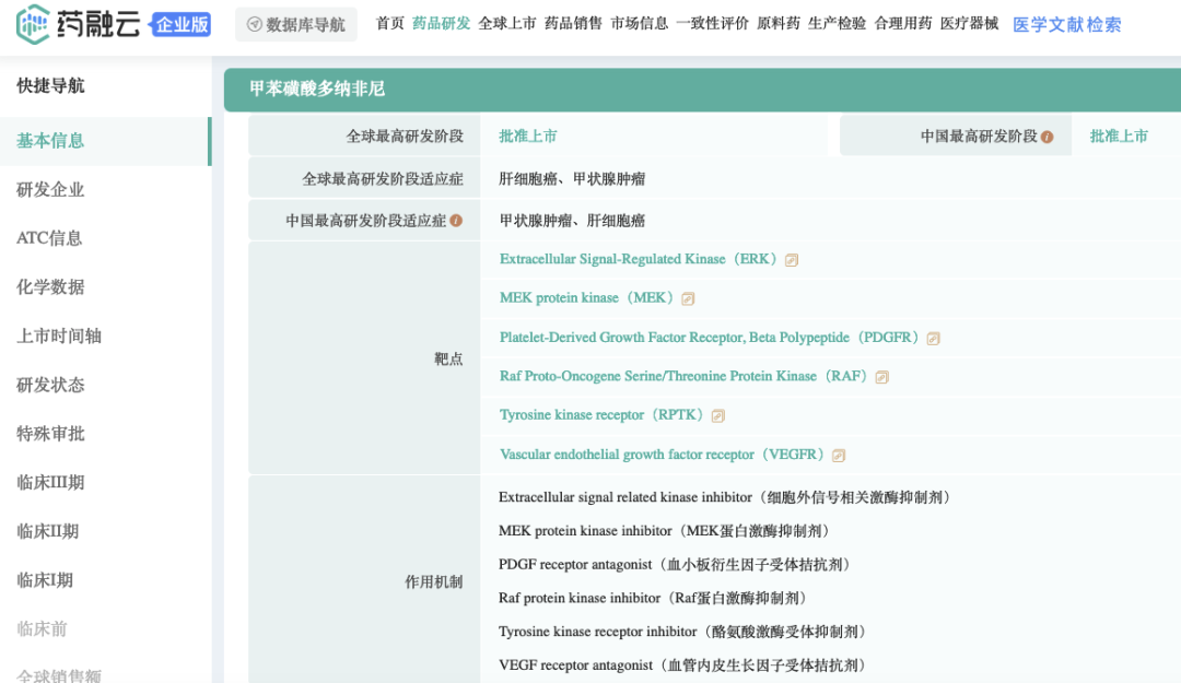 截图来源:药融云全球药物研发数据库