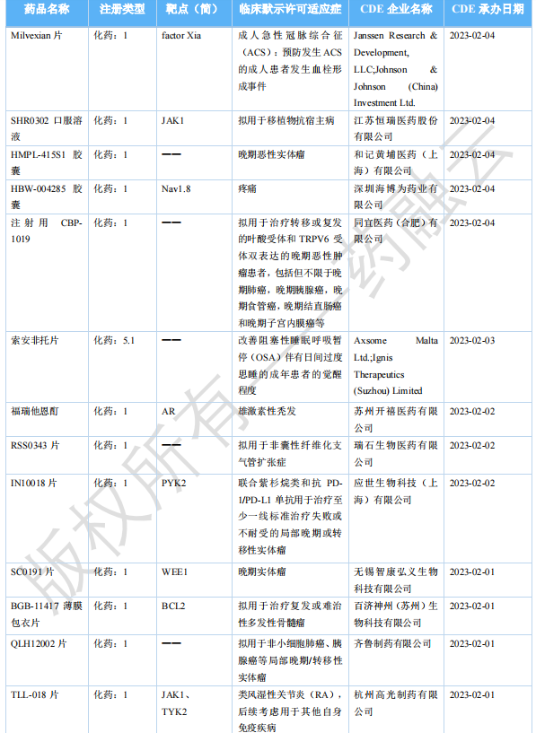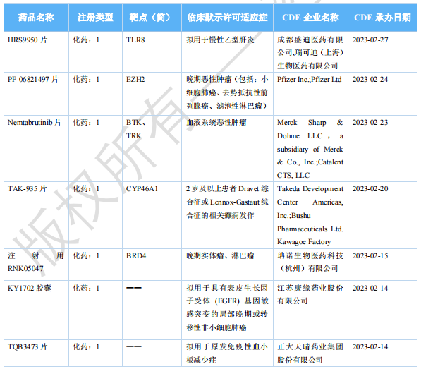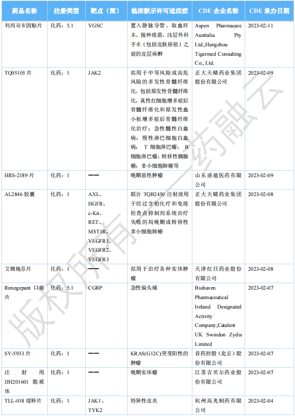 2023年4月国内获批临床新药(部分)