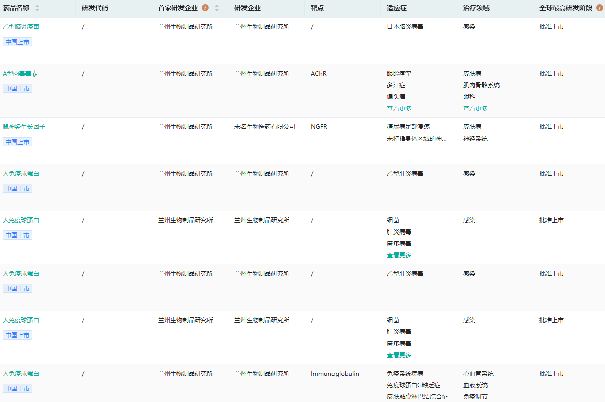 兰州生物制品研究所获批上市药品查询(部分展示)