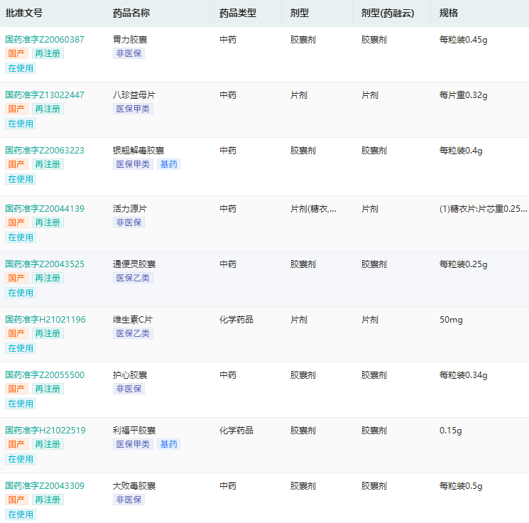 石家庄东方药业药品生产批文查询(部分展示)