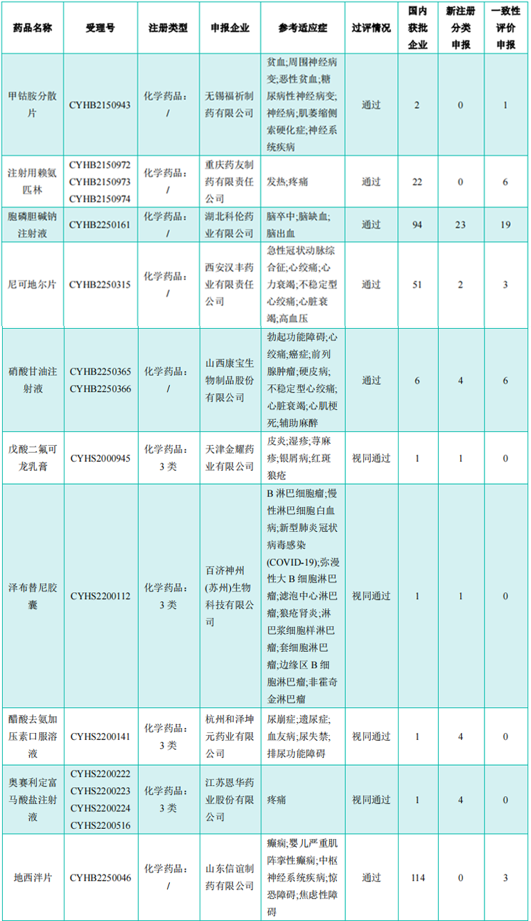 本周首次过评/视同过评品种(部分)