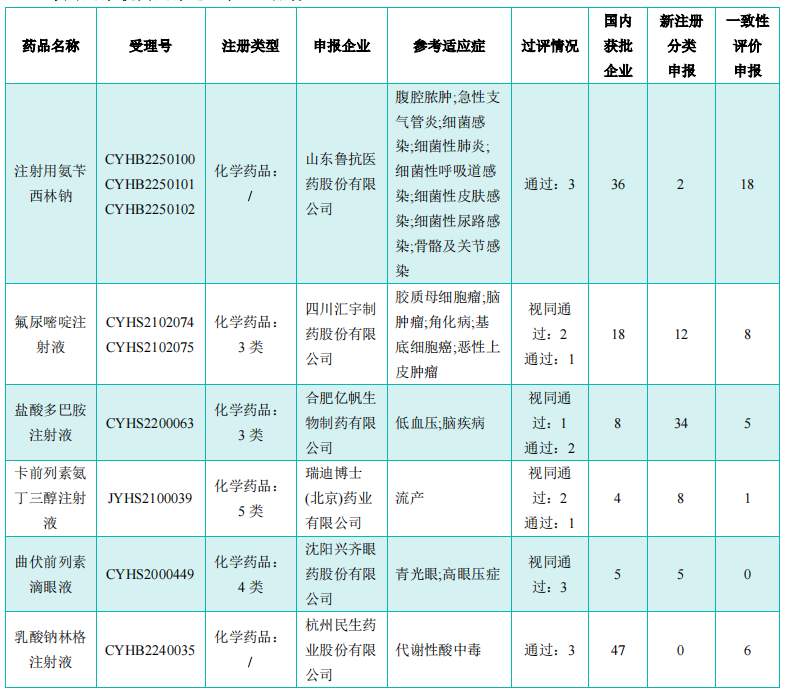 同时,在本周过评/视同过评达3家企业的品种有6个,分别是注射用氨苄西林钠、氟尿嘧啶注射液、盐酸多巴胺注射液、卡前列素氨丁三醇注射液、曲伏前列素滴眼液、乳酸钠林格注射液。